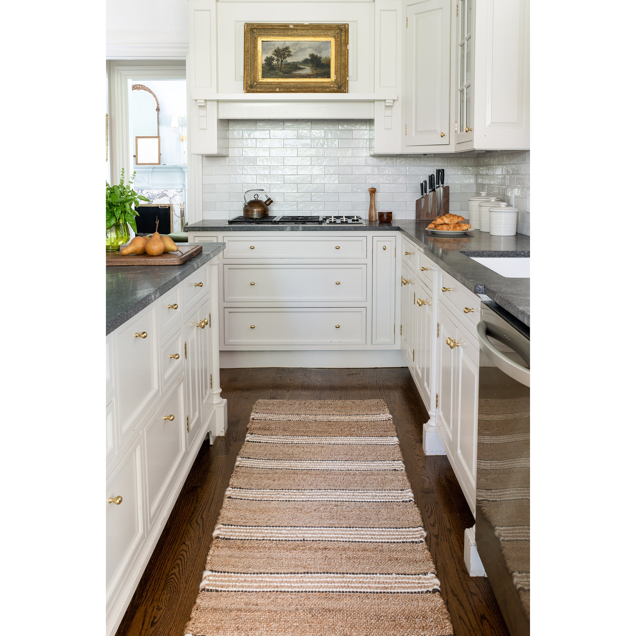 The Chestnut Collection by Erin Gates incorporates a modern twist on basic styles; providing an elevated approach to traditional striped patterns. These beautifully handwoven jute and wool rugs are thick and durable too. With ivory accents to contrast the natural coloring of the jute material, and additionally contrasting brown and blue colorways, it's a warm and inviting palette that will easily work with the rest of your home.