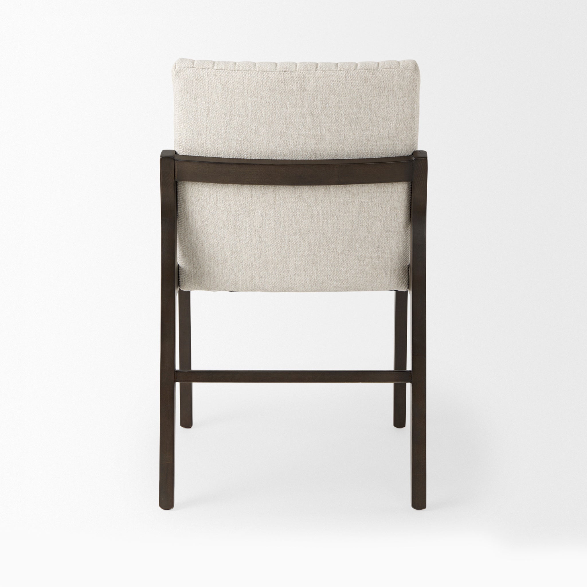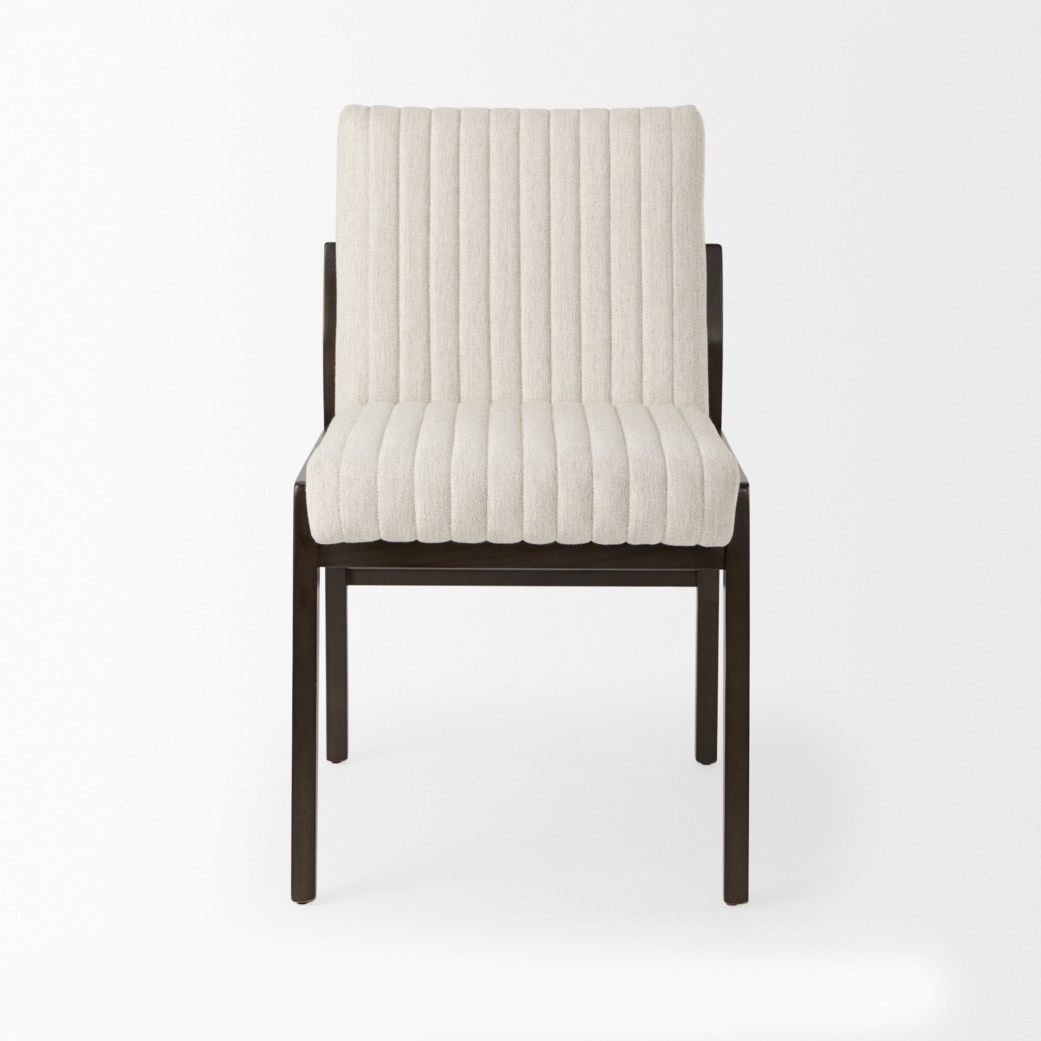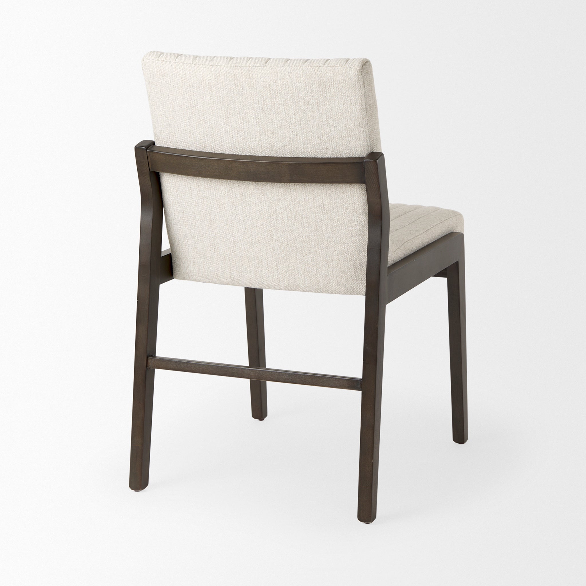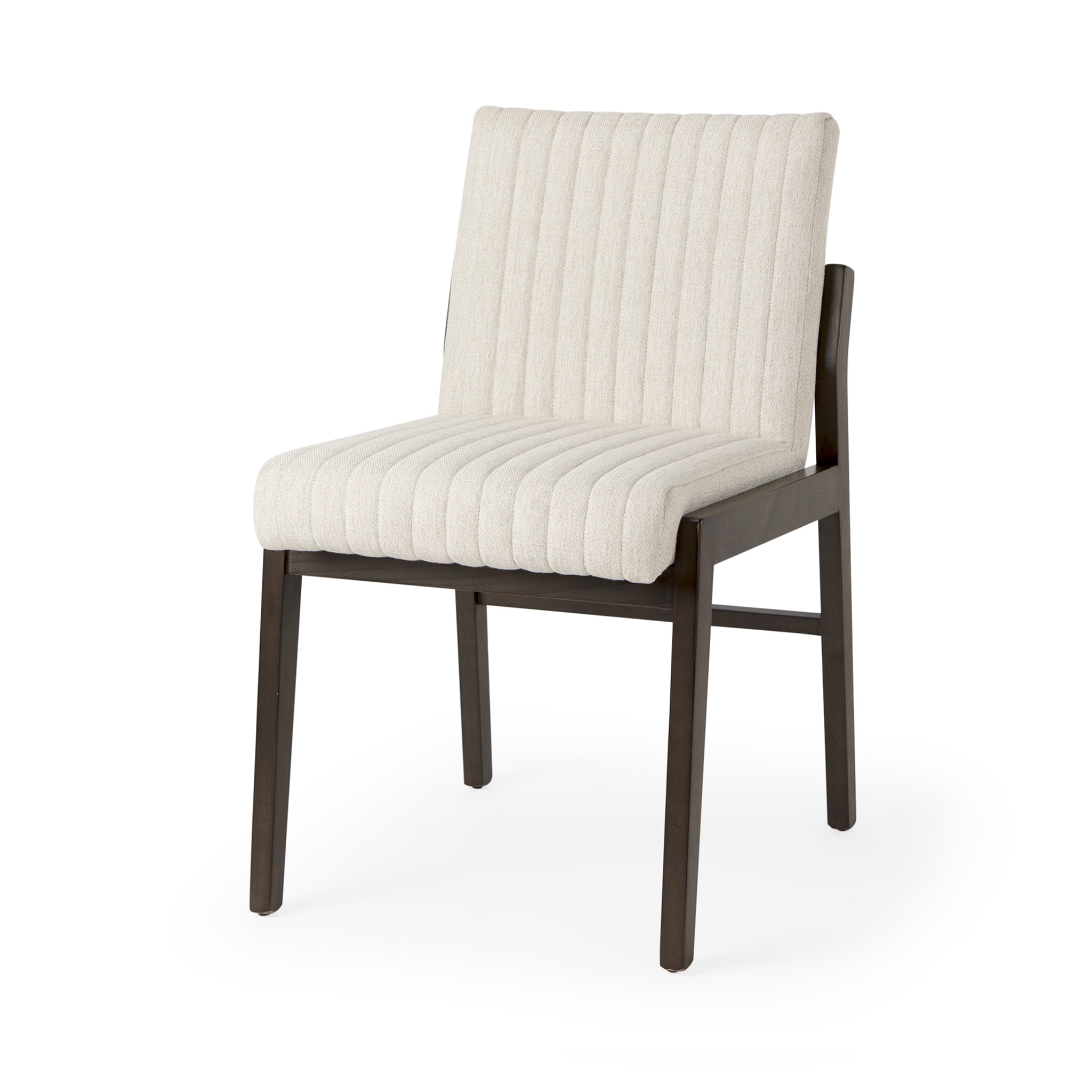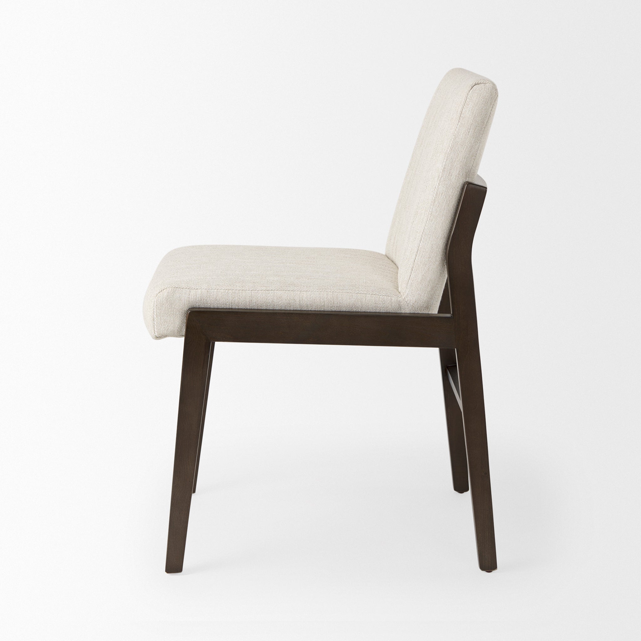 Theo Cream Fabric Armless Dining Chair in Dark Wood - Set of 2