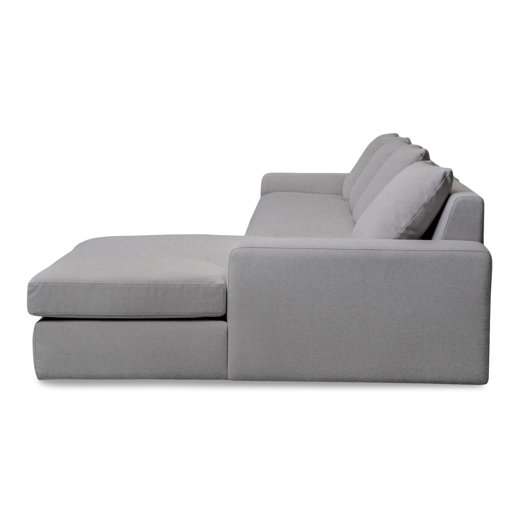 The Tommy sectional offers comfortable seating in durable C0 100% polyester fabric. An oversized structure, wide track arm, and bench-style seat topped with a 70% feather blend ensure even comfort. Featuring removable back cushions and even channeling within the seat to ensure its feathers stay evenly distributed, it is perfect for family living.