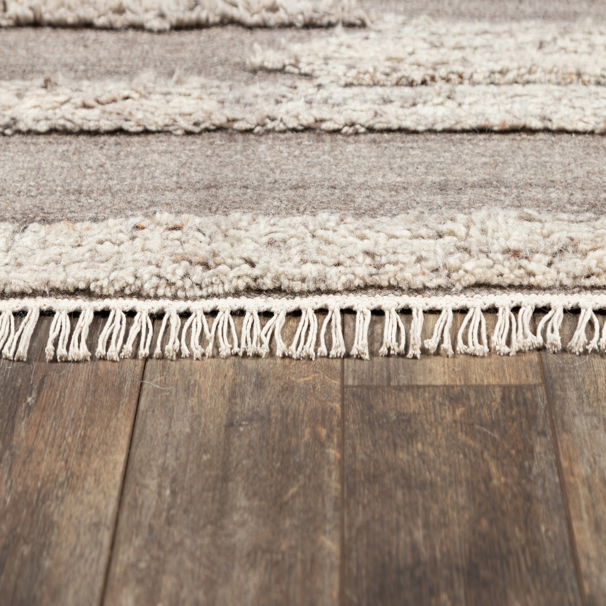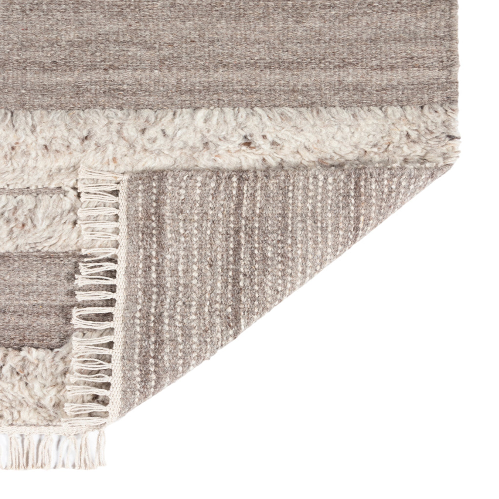 Inspired by the beauty of sun-aged natural elements, the Rafalla Collection honors the abstract beauty of a stark landscape. Handmade with natural, undyed wool and inspired by wonderfully shaggy Tulu rugs, this line features a high-low pile that feels rich underfoot. These textured pieces lend a grounding influence to any space they're placed in.