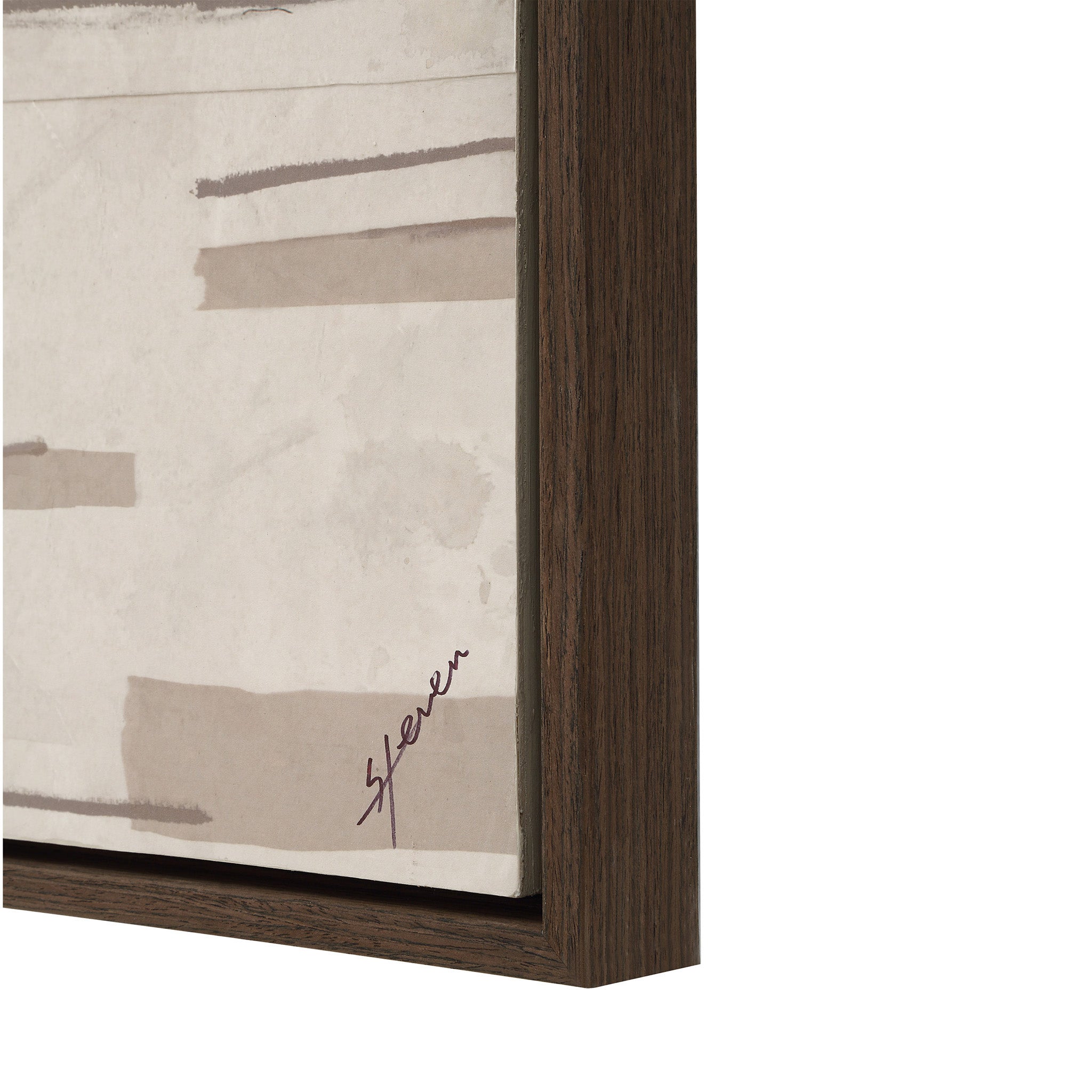 Steven Sabados lends his modern design sensibility to this stunning wall art canvas that will make a statement in any interior. The Canadian designer and television host conceptualized this hand-painted and printed piece with a heavy paper collage technique, balancing neutral tones and texture. Framed in black oak, this modern art is ready to hang.